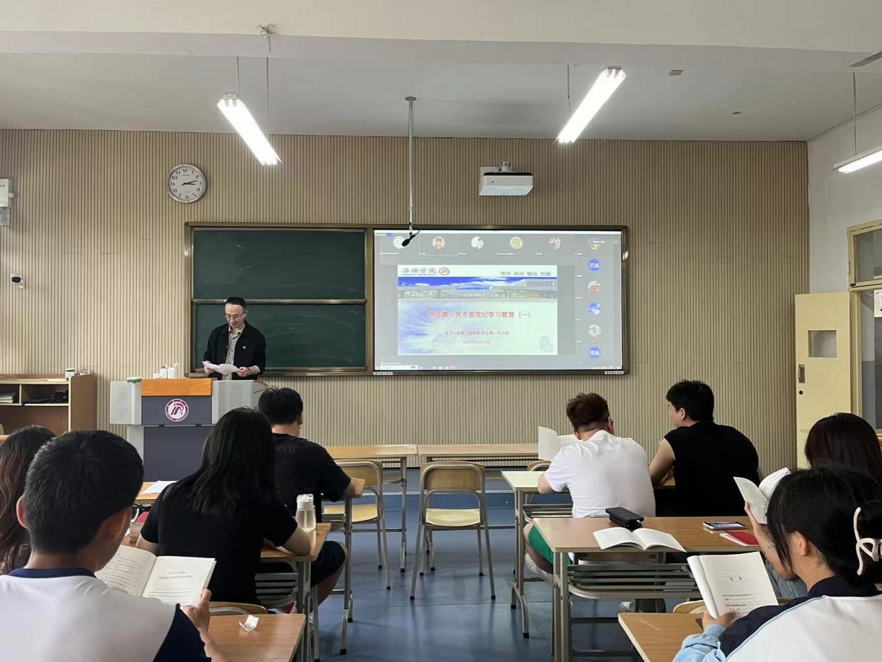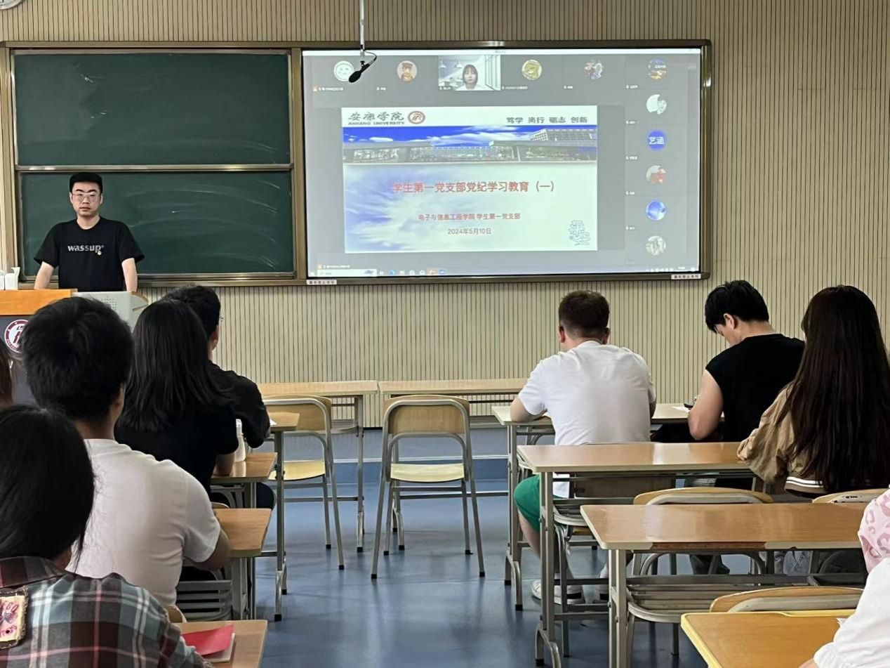 按照学校党委开展党纪学习教育工作安排,结合Beat365中文官方网站学生第一党支部党纪学习教育实施方案,5月10日,Beat365中文官方网站学生第一党支部通过线上线下相结合方式召开党纪学习教育专题学习会,会议由党支部书记翟子轩主持,Beat365中文官方网站学生第一党支部全体党员参与。