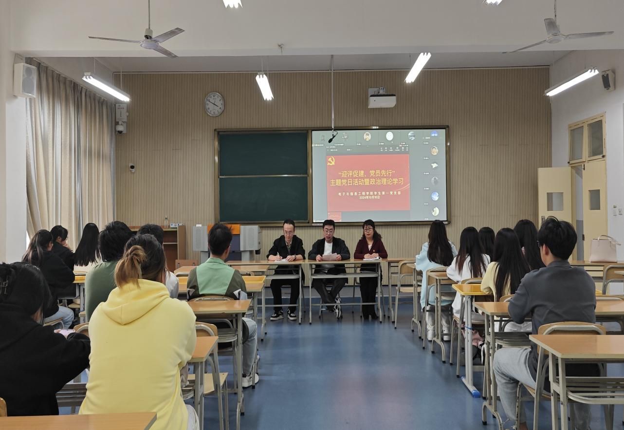 为提高学生党员对本科教育教学审核评估工作重要性的认识,充分发挥学生党员的先锋模范作用,以优异成绩迎接审核评估。2024年10月16日,Beat365中文官方网站学生第一党支部在一号教学楼1319教室通过线上线下相结合的形式,开展了“迎评促建,党员先行”主题党日活动暨政治理论学习,会议由学生第一党支部书记翟子轩主持,学生第一党支部全体党员、入党积极分子、发展对象参与。