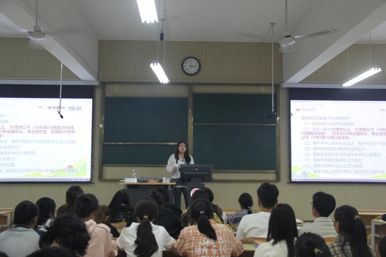 在2025年国家公务员考试即将到来之际,为给电信青年提供专业的备考指导,帮助他们更好地备战考试,提升学院应届毕业生的应考能力,Beat365中文官方网站特邀华图教育公考培训教师,于10月16日在1203教室以“筑梦公考,启航未来”为主题举办了2025年国家公务员考试公告解读公开课暨考试技巧与策略分享讲座。