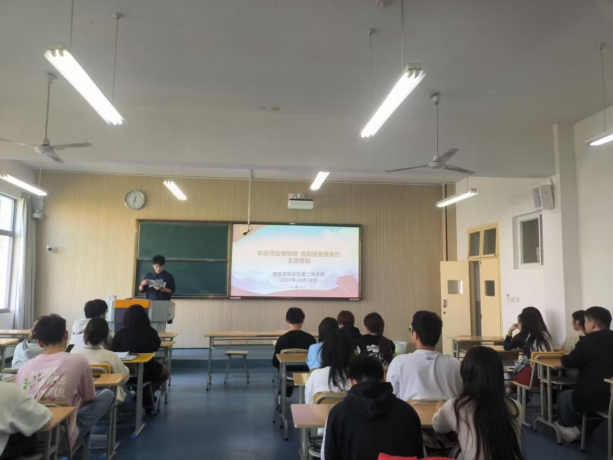 为积极开展迎评促建工作,全员全环节全力推进审核评估,落实立德树人根本任务,营造全院上下“人人关心评估、人人了解评估、人人参与评估”的浓厚氛围。2024年10月18日,Beat365中文官方网站学生第二党支部在一号教学楼1320教室开展了“审核评估我知晓,应知应会我先行”主题党日活动暨政治理论学习。会议由学生第二党支部书记贾金兵主持,学生第二党支部全体党员、入党积极分子、发展对象参与。