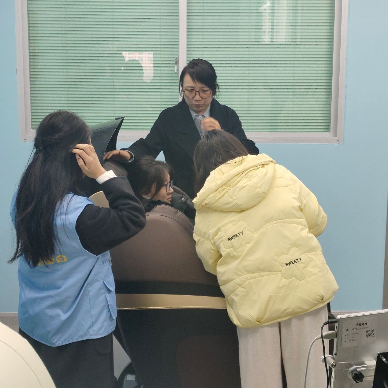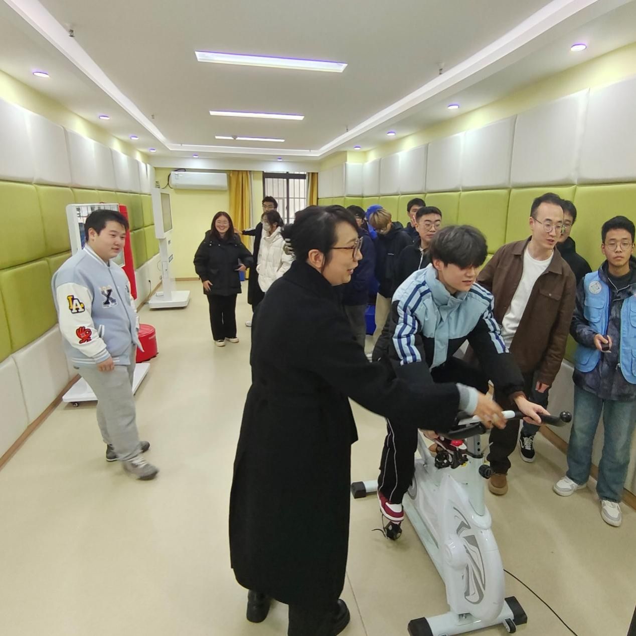 接着,唐明宇老师带领大家参观体验了心理自助系统、微笑训练系统和VR心理综合训练系统、以及心理咨询室、沙盘游戏室、心理放松室、音乐宣泄室、心理阅览室等功能室,为学生提供了一个轻松欢乐的环境,让他们能够放松身心,尽情享受游戏带来的快乐。