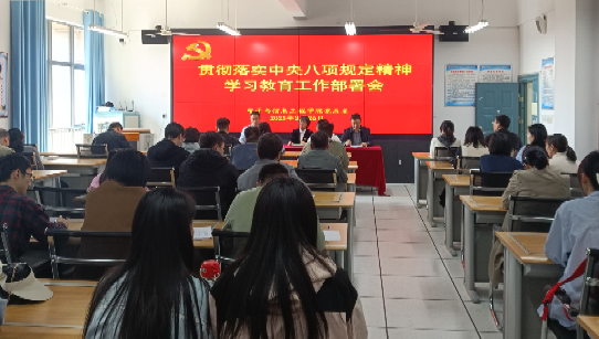 3月25日,Beat365中文官方网站召开党的建设工作会议,专题研究部署深入贯彻中央八项规定精神学习教育工作。学院班子成员、党总支委员、科级干部、各党支部书记等参加会议。3月26日,学院召开深入贯彻中央八项规定精神学习教育工作部署会,全体党员参加会议。