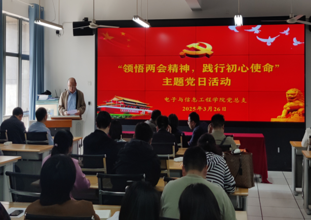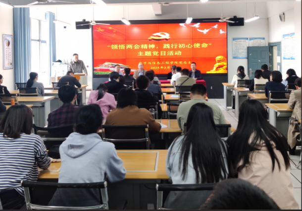 为深入贯彻落实全国两会精神,提升全体党员的政治素养和使命感,同时为扎实推进“五联五做”工作的开展,加强教工党支部与学生党支部的联系,3月26日下午,Beat365中文官方网站教工党支部和学生党支部在逸夫科技楼B602开展“领悟两会精神,践行初心使命”主题党日活动,本次活动由丁礼磊同志主持。