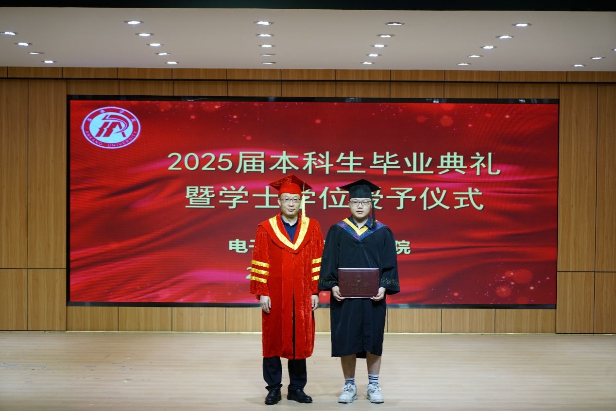 院长王克刚在致辞中以“三维成长坐标”寄语毕业生:要做“有根”的追光者。他回顾中国科技从“跟跑”到“并跑”“领跑”的跨越,强调个人的理想与国家的需求同频的重要性,叮嘱从事软件开发、芯片研发、算法设计及投身产业服务等领域的学子,要以“家国情怀”作为人生底色。要做“有温度”的创新者。以学生在养老服务中心演示“智能守护”系统、助力山区留守儿童接触编程等实践为例,强调技术服务于人,呼吁毕业生在产品设计中始终思考“这能解决谁的问题、这能温暖谁的生活”。要做“有韧性”的攀登者。结合高校毕业生就业帮扶政策,鼓励学生以实验室调参数的坚持、团队协作的智慧面对未来挑战,寄语他们以“智慧”为羽翼,以“责任”为罗盘,在时代星海中绽放光彩!