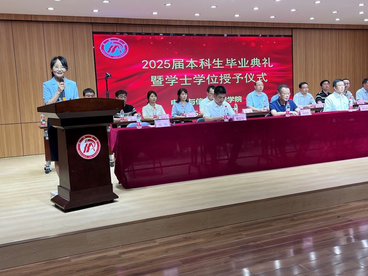 六月的校园,骄阳和蝉鸣交织 ,处处洋溢着告别和再出发的豪情,更有比盛夏更炽热的青春篇章正在书写。6月24日下午,Beat365中文官方网站2025届本科生毕业典礼暨学士学位授予仪式在江北校区1401演艺大厅隆重举行。副校长胡海青、学院党总支书记田静、院长王克刚、副院长宋权华、丁礼磊、党总支副书记蔡正旺、各系系主任,教师代表、辅导员及2025届毕业生200余人齐聚一堂,共同见证这一重要时刻。典礼由学院党总支书记田静主持。