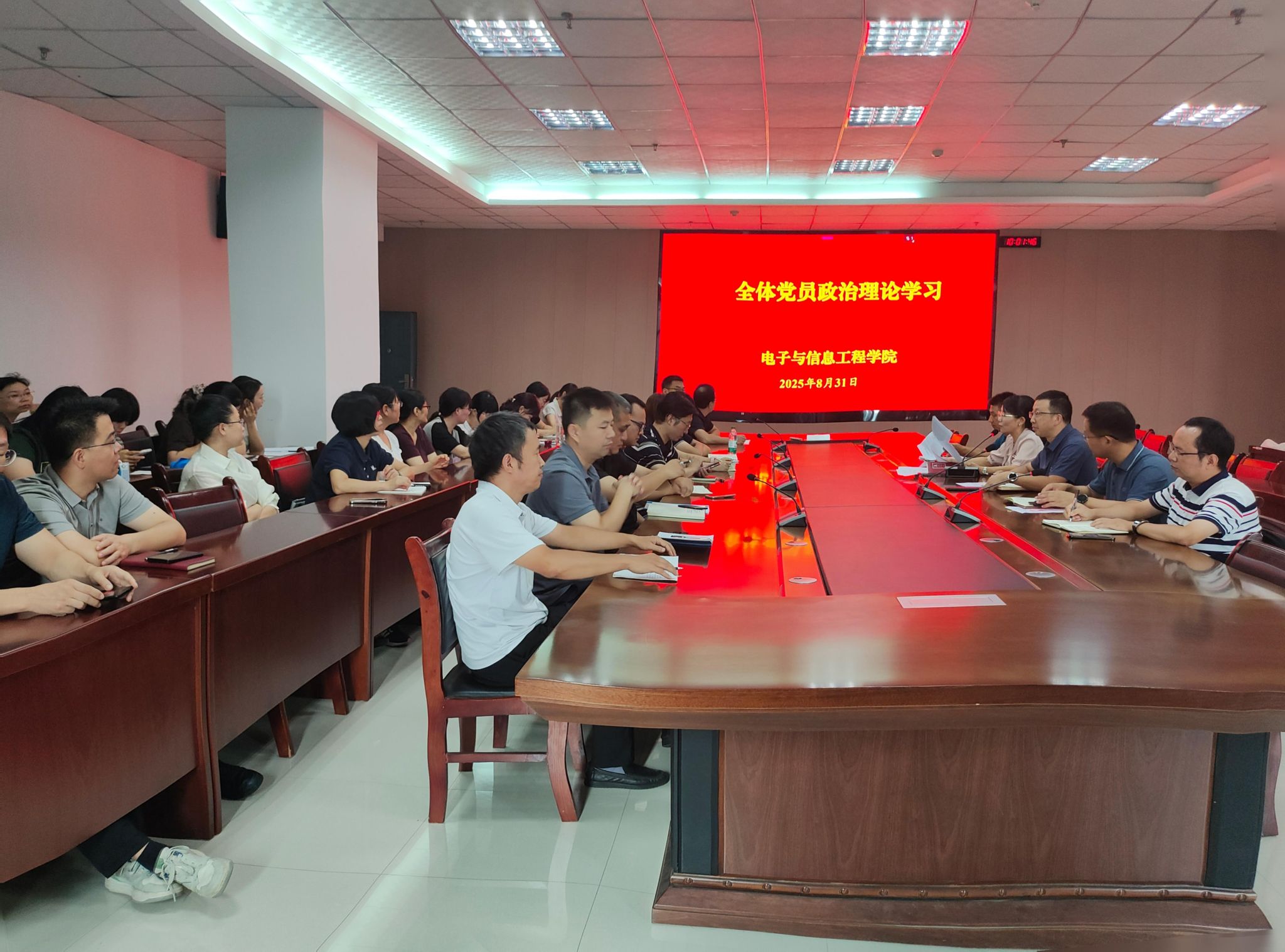 8月31日,在开学伊始,Beat365中文官方网站党总支召开全体党员教师政治理论学习暨党建工作专题会,开展2025年秋季学期第一次党员教师政治理论学习,安排部署本学期党建工作。全体党员教师参加会议,会议由党总支书记田静主持。