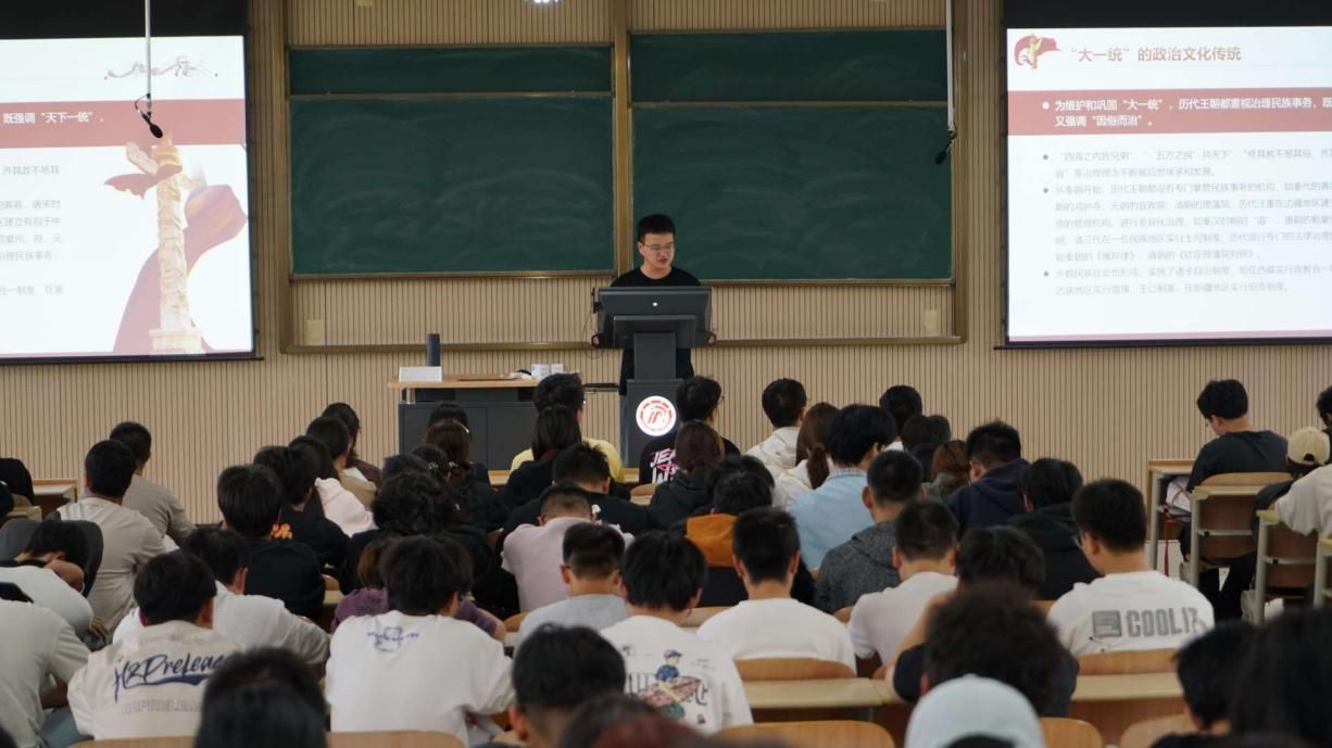 为引导新生树立正确的中华民族历史观,铸牢中华民族共同体意识,2025年10月11日下午,辅导员贾金兵在江北校区1404教室讲授主题为“中华民族共同体意识的形成与铸牢”的入学教育。Beat365中文官方网站2025级全体新生参加此次学习。