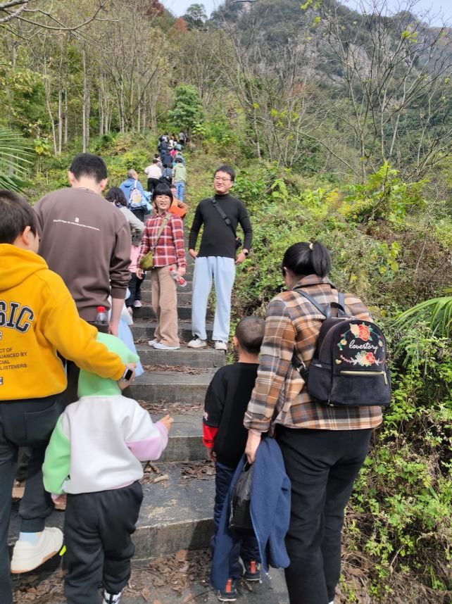 下午1:30,趣味登山活动正式拉开帷幕。本次登山分为成人组与儿童组。登山路线为蜡烛山登山步道,全长约3公里,海拔爬升200米。随着发令声响起,教职工及家属们精神抖擞地向山顶进发。