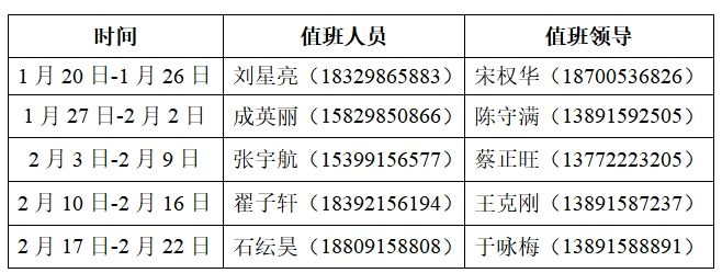 根据学校安排,Beat365中文官方网站寒假假值班安排及相关工作要求如下: