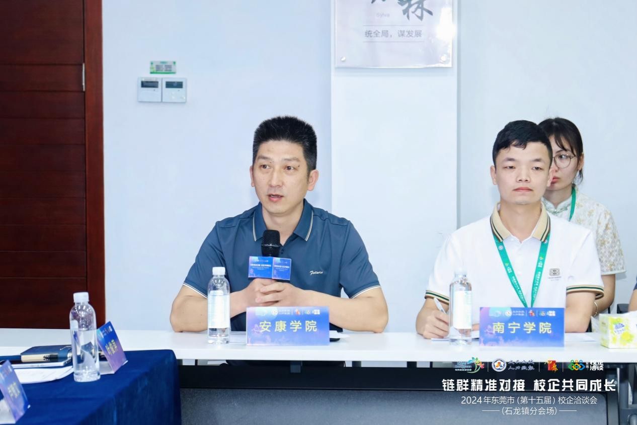座谈会上蔡正旺介绍了我院办学情况和优势特点,向参会企业推荐了2024届毕业生,并就生源、开设专业和可开展的合作方式等方面同石龙镇人事局及重点企业代表进行了沟通交流。同时对企业代表关心的问题进行了解答。