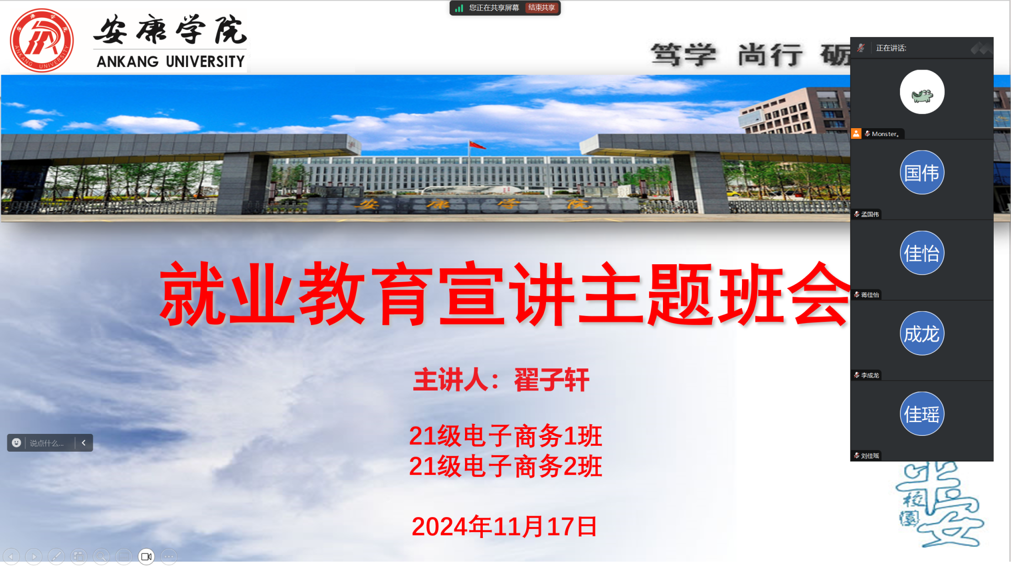 为帮助毕业生了解当前就业形势,明确就业方向,提升就业竞争力,近日,电子与信息工程学院通过线上线下相结合的方式召开了毕业生就业工作宣讲,此次会议由毕业班辅导员老师主持召开,全体毕业生参加。